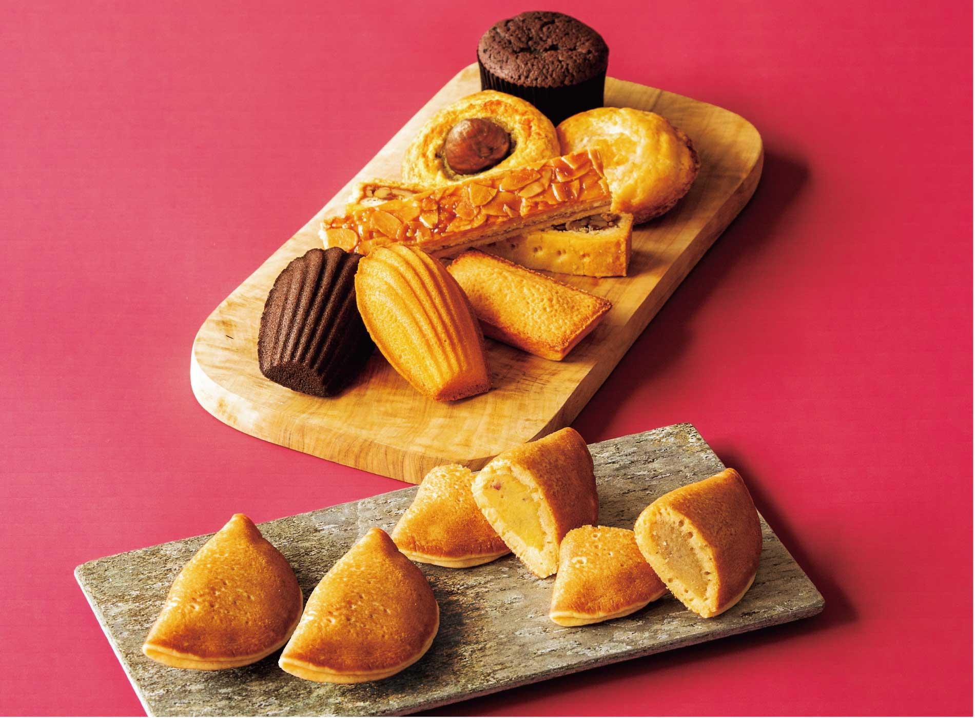 ①焼きチョコレート ②マロンパイ(感謝祭限定)③アップルパイ ④エンガーデン ⑤フロランタン ⑥マドレーヌ ⑦マドレーヌショコラ ⑧プレミアムフィナンシェ ⑨甘美月(栗餡)⑩甘美月(芋餡)