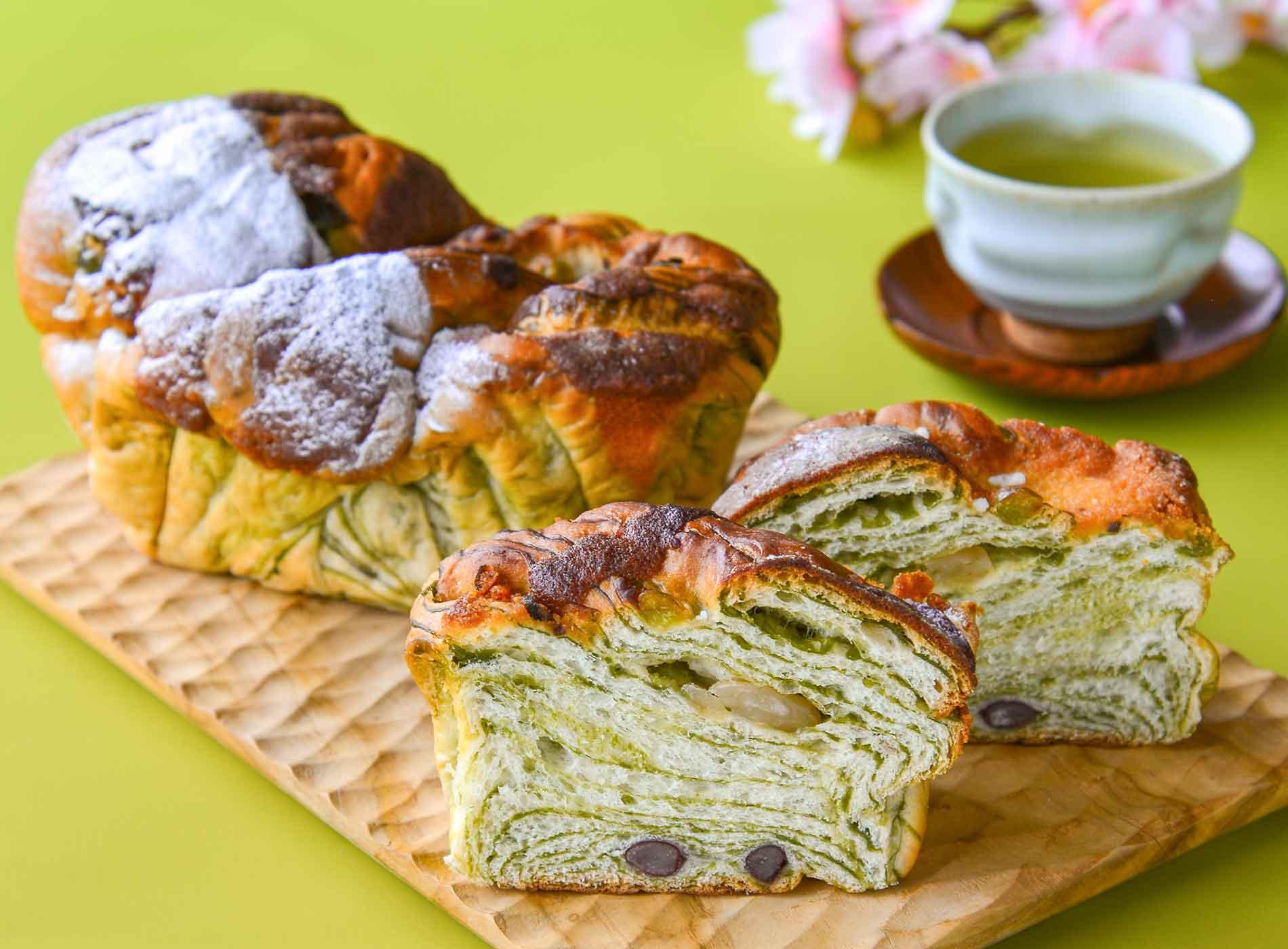 抹茶の風味と五色豆かのこを合わせ、彩りよく仕上げた和風パン